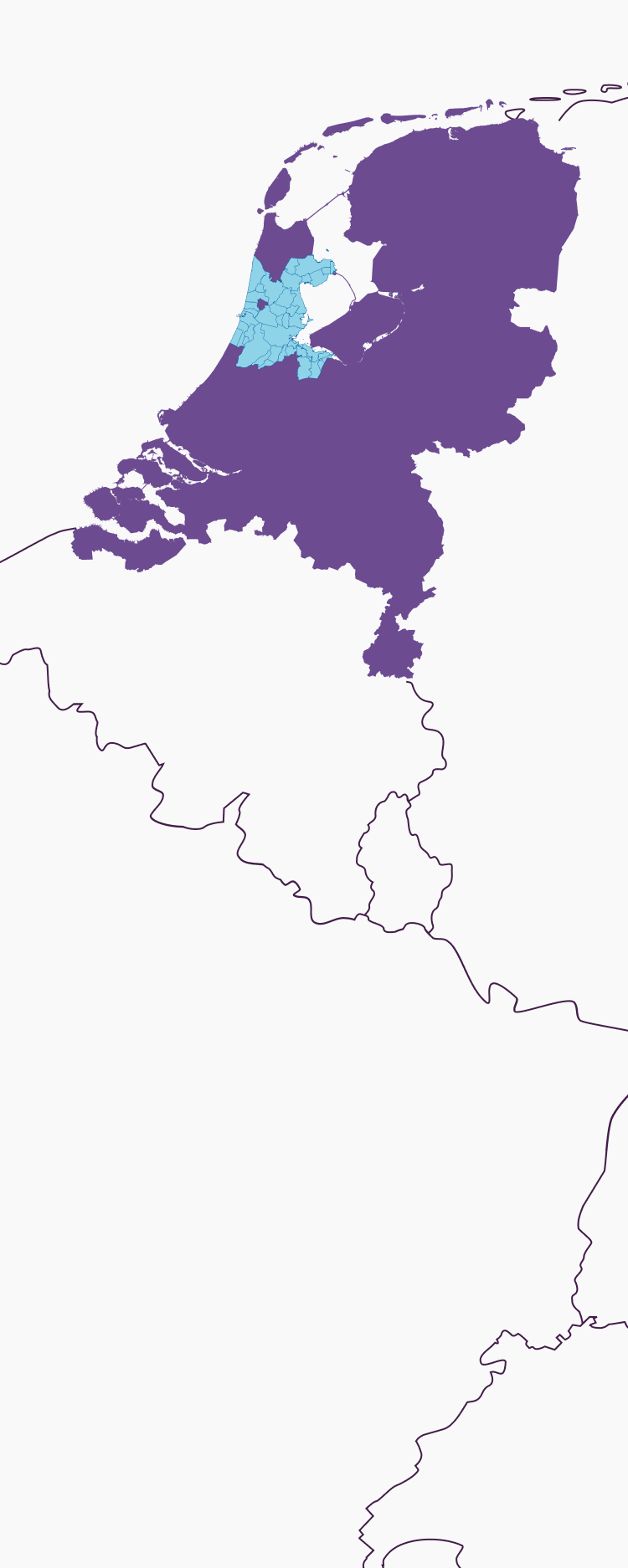 We werken samen met een heleboel gemeenten. Het is voor ons ontzettend belangrijk dat we altijd dichtbij hulp kunnen bieden, daarom werken we in teams bij jou in de buurt. Samen kijken we dan of we de hulp kunnen geven die nodig is. Zie je jouw gemeente er niet tussen staan? Neem contact met ons op. Dan bespreken we graag wat mogelijk is.